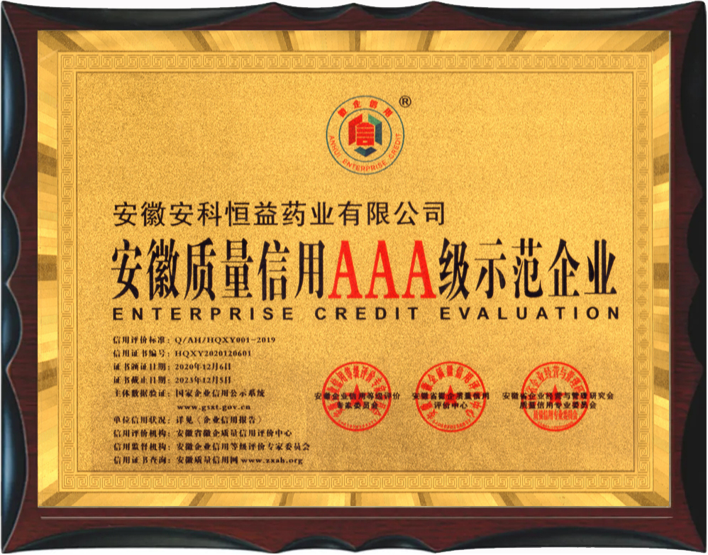 安徽省徽企質(zhì)量信用評價(jià)中心和安徽企業(yè)信用等級評價(jià)專家委員會(huì)依據(jù)GB/T23794-2015《企業(yè)信用評價(jià)指標(biāo)》、Q/AH/HQXY001-2019《企業(yè)信用等級評價(jià)管理辦法》,針對我公司的信用記錄、經(jīng)營狀況、財(cái)務(wù)指標(biāo)、發(fā)展前景,結(jié)合國家及地方相關(guān)政策,本著公平、公正、獨(dú)立、客觀、科學(xué)原則,評定公司企業(yè)信用等級為:安徽質(zhì)量信用AAA級示范企業(yè)。并頒發(fā)了獎(jiǎng)牌及證書。
