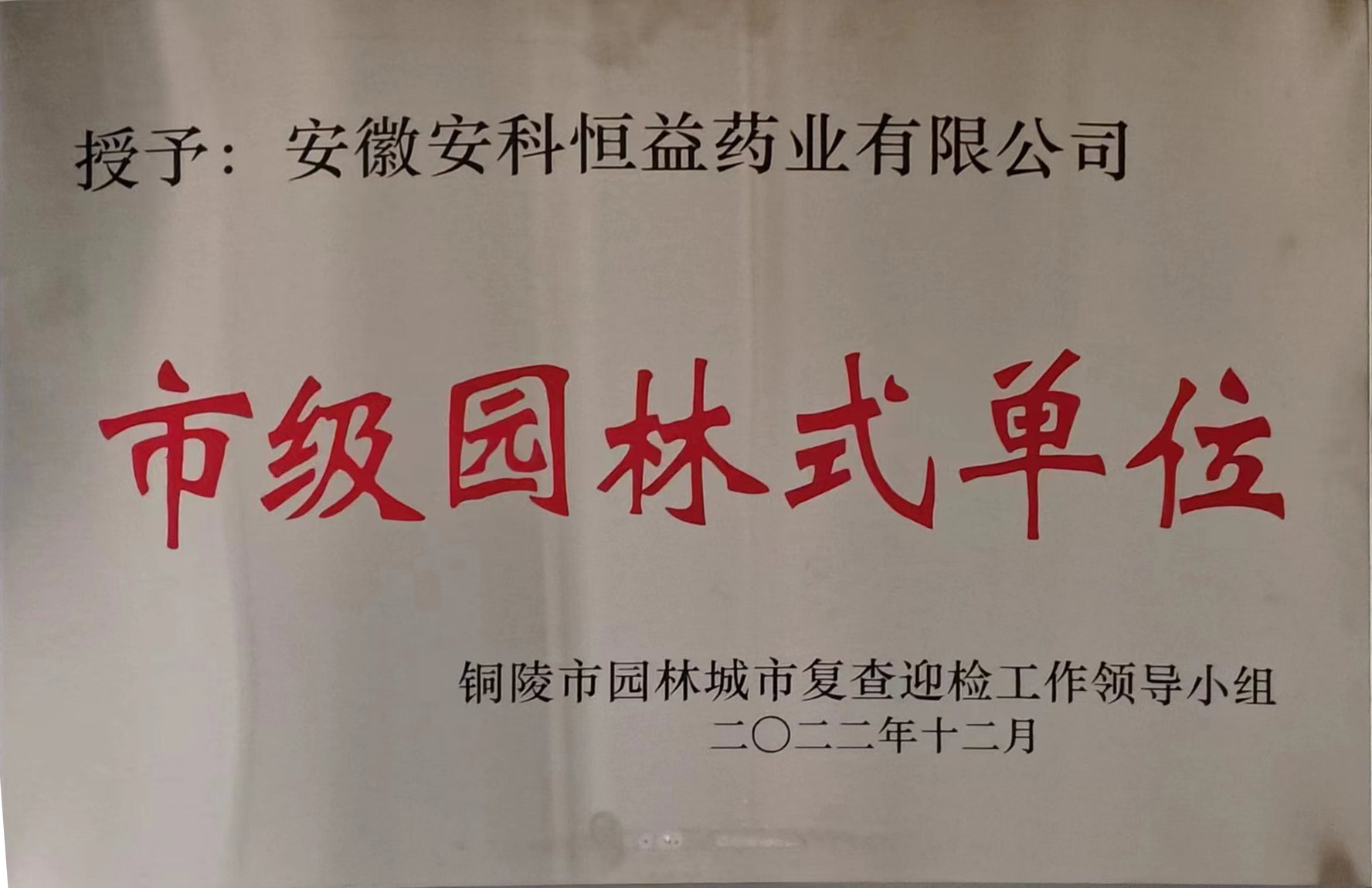 為提高城市綠化美化水平,深入推進園林式居住區、單位創建,經銅陵市國家園林城市復查迎檢工作領導小組審評,42個單位確定為銅陵市第二批市級園林式單位,我公司位列其中。