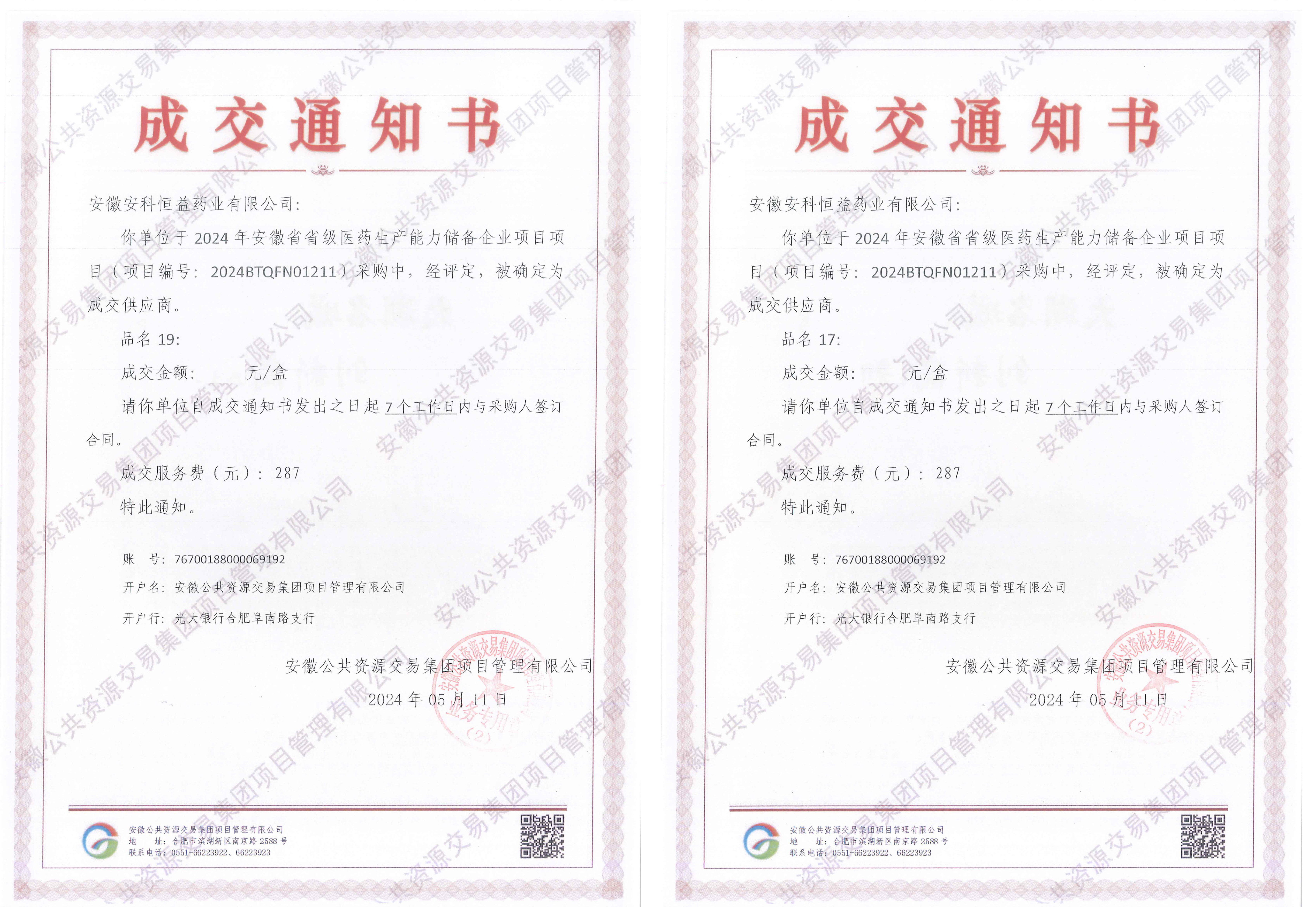 經(jīng)綜合評定,我公司阿莫西林膠囊、頭孢拉定膠囊兩個品種進(jìn)入名單,成功中標(biāo),公司確定為安徽省省級醫(yī)藥生產(chǎn)能力儲備企業(yè)項目供應(yīng)商之一,中標(biāo)品種簽訂3年服務(wù)期限。